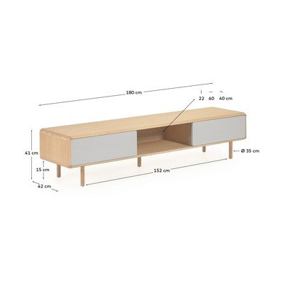 TV stolík Anielle od značky Kave Home je elegantným doplnkom do vašej obývacej izby. Jeho konštrukcia je vyrobená z masívneho jaseňa a jaseňovej dyhy, čo mu dodáva prírodný vzhľad a odolnosť.