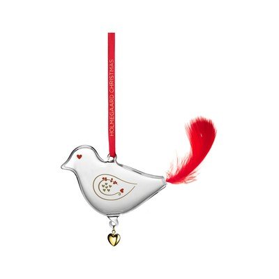 Tento sklenený vtáčik je z ručne fúkaného skla, čo zaručuje jeho jedinečnosť. Vizuálne ozdobu zdobí červené srdiečko namiesto oka, zlaté srdiečka na tele, skutočné červené pierko ako chvost a malý zlatý prívesok v tvare srdca visiaci zospodu. Súčasťou je aj hodvábna stužka, vďaka ktorej si ozdobu zavesíte na stromček, do okna alebo na vetvy ihličnanov. Krásne doplní aj ostatné kúsky z nostalgickej vianočnej kolekcie.