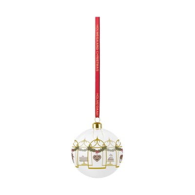 Banka je vyrobená z ručne fúkaného skla a je doplnená o červenú hodvábnu stužku. Rovnakým maľovaným motívom môžete okrem svojho stromčeka doladiť aj vianočne prestretý stôl. V ponuke nájdete