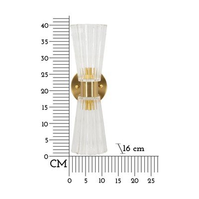 Nástenné svietidlo Prague od značky Mauro Ferretti. Dve sklenené tienidlá s ryhovaným povrchom sú usporiadané v elegantnom tvare presýpacích hodín.