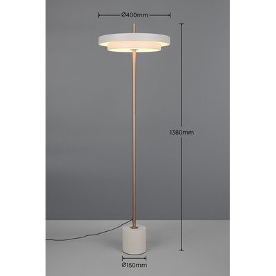 Lampa Keaton je vybavená modernou LED technológiou, ktorá zaručuje vysokú kvalitu svetla, dlhú životnosť a nízku produkciu tepla. Disponuje integrovaným senzorovým stmievačom, ktorý umožňuje plynulú reguláciu jasu. Pohodlné ovládanie zaisťuje dotykové ON/OFF tlačidlo. Môžete si tiež nastaviť farbu svetla od teplej po studenú bielu a vytvoriť si tak individuálnu svetelnú atmosféru. Lampa je vyrobená z kvalitného kovu a jej celková výška je 138 cm.