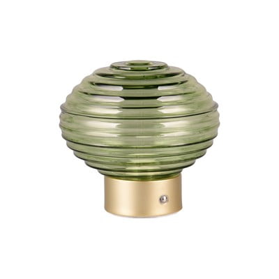 Stmievateľná LED stolová lampa v zelenej a zlatej farbe so skleneným tienidlom (výška 14,5 cm) Earl – Reality