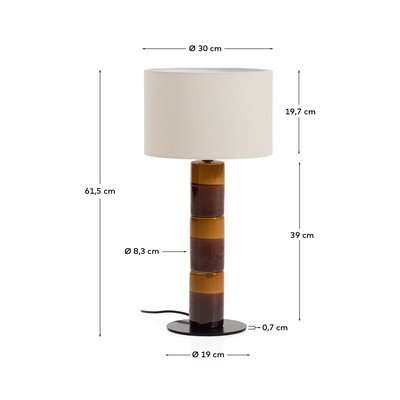 Stolová lampa Mavran od značky Kave Home. Glazovaná keramická základňa s pruhmi v teplých tónoch vnesie do každej miestnosti dynamiku a osobitosť.