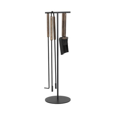Drevené rukoväte majú integrovaný magnet, ktorý drží nástroje pevne na stojane, keď ich práve nepoužívate. To robí z kozubovej súpravy zároveň dekoratívny doplnok. Lopata, štetec a kutáč tak vyzerajú, ako by poletovali pozdĺž kovovej konštrukcie. Kliešte sú jednoducho zavesené na hornej priečke.