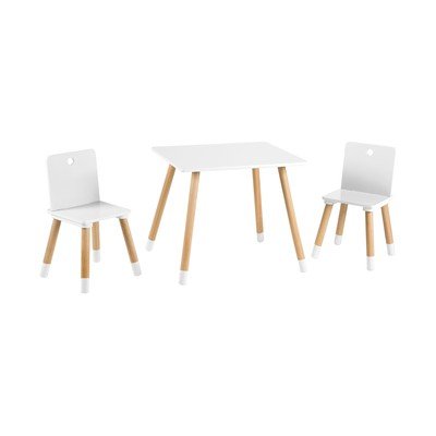 Táto destká súprava nábytku obsahuje stôl a dve stoličky, ktoré sú navrhnuté na pohodlné a bezpečné sedenie. Vďaka kompaktným rozmerom sa skvele hodí do detskej izby alebo herného kútika. Stoličky majú výšku sedadla 28 cm, celkové rozmery 54 × 26,5 × 26,5 cm. Stôl meria 49 × 60 × 50 cm.
