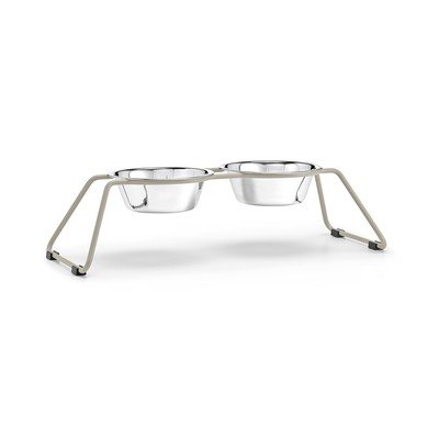 Silikónový krúžok pod miskami zaisťuje, že misky zostanú na svojom mieste a nebudú hrkať. Misky z nerezovej ocele sa ľahko čistia a sú vhodné do umývačky riadu. Súčasťou balenia sú aj štyri plastové nožičky, ktoré zabraňujú kĺzaniu podstavca počas jedla.