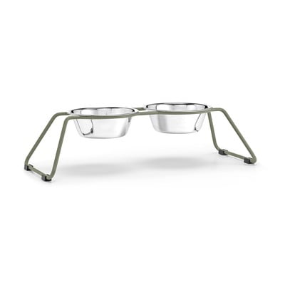 Silikónový krúžok pod miskami zaisťuje, že misky zostanú na svojom mieste a nebudú hrkať. Misky z nerezovej ocele sa ľahko čistia a sú vhodné do umývačky riadu. Súčasťou balenia sú aj štyri plastové nožičky, ktoré zabraňujú kĺzaniu podstavca počas jedla.