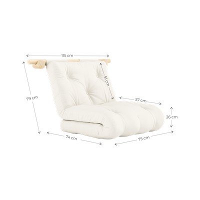 Kreslo je vybavené štyrmi nástennými držiakmi, ktoré ho bezpečne držia na mieste a zároveň umožňujú, aby fungovalo ako dekoratívny prvok v miestnosti. Na sedenie jednoducho presuňte kreslo do nižšej polohy. Ak potrebujete miesto na spanie, stačí rozložiť matrac na podlahu. Držiaky je možné inštalovať v rôznych miestnostiach, čo umožňuje presúvať kreslo podľa potreby. Konštrukčná tyč je široká 115 cm.