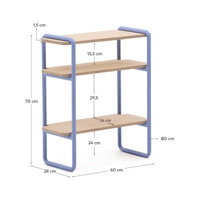 Detská knižnica TinnZávesná, v dekore jaseňa, z preglejky, povrchová úprava: práškovanie, svetlomodrá/v prírodnej farbe, šírka 60 cm, výška 70 cm, hĺbka 28 cm