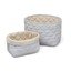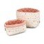 Súprava látkových košov Classic Stripes Blue, Praline značky Cam Cam Copenhagen je praktickým riešením na usporiadanie vecí v detskej izbe, pri prebaľovacom pulte alebo v kúpeľni. Koše sa pýšia prešívaným povrchom s jemným prúžkovaným vzorom. Sú vyrobené zo 100% organickej bavlny s OCS certifikáciou a vyplnené 100% Oeko-tex Standard polyesterom, pričom 36% materiálu je z organicky pestovaných zdrojov. Vnútorná podšívka je zdobená typickými potlačami Cam Cam a okraj koša je možné vyhrnúť dole, aby potlač vynikol. Rozmery košov sú 24 x 17 cm a 22 x 15 cm.