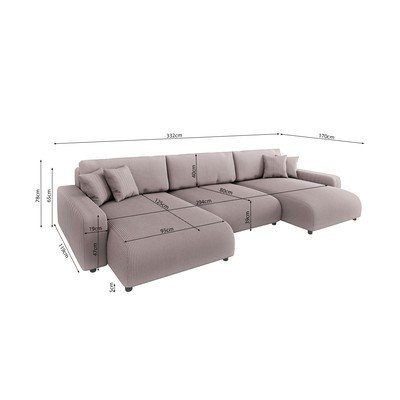Menčestrová, rozkladacia/s úložným priestorom, do tvaru "U", svetloružová, viacmiestna, šírka 332 cm