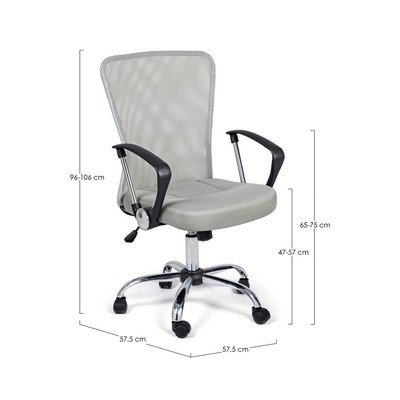 Čalúnená, pojazdná/s nastaviteľnou výškou/s podrúčkami, svetlosivá, nosnosť 110 kg, výška sedadla 57-57 cm