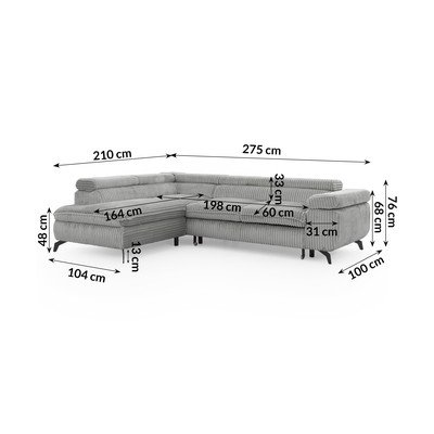 MenčestrováPolohovacia/rozkladacia/s úložným priestoromĽavý roh/do LSvetlosiváVhodná pre domácich miláčikov/odolná proti škvrnámŠtvormiestnaŠírka 275 cm
