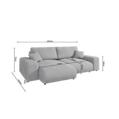 Menčestrová, pravý roh/ľavý roh/variabilná/s leňoškou, svetlosivá, trojmiestna, šírka 237 cm