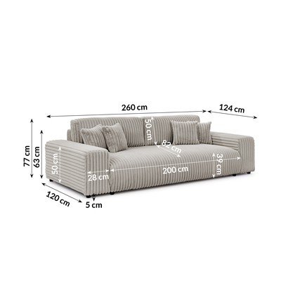 Menčestrová, rozkladacia/s úložným priestorom, svetlosivá, vodoodolná/odolná proti škvrnám, trojmiestna, šírka 260 cm