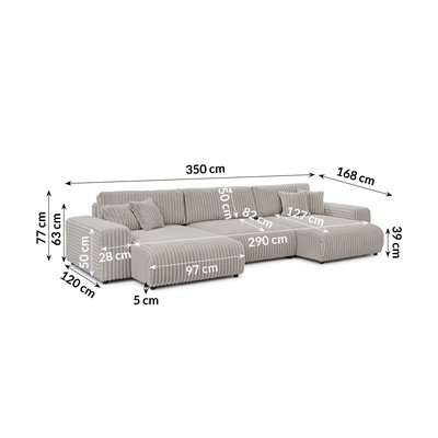 MenčestrováRozkladacia/s úložným priestoromDo tvaru "U"SvetlosiváVodoodolná/odolná proti škvrnámViacmiestnaŠírka 350 cm