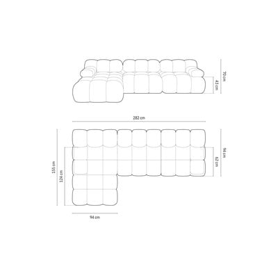 Z textílie buklé, ľavý roh/s leňoškou, sivá, štvormiestna, šírka 285 cm