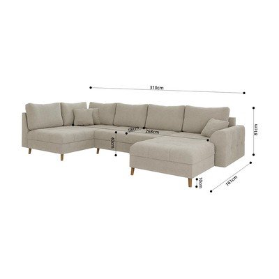 Ľavý roh/do tvaru "U", sivá, viacmiestna, šírka 310 cm