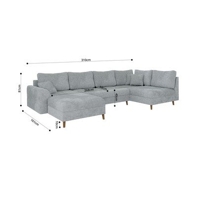 Ženilková, ľavý roh/do tvaru "U", sivá, viacmiestna, šírka 310 cm, hĺbka 161 cm, hĺbka sedadla 58 cm
