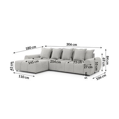Ľavý roh/s leňoškouSvetlosiváVodoodolná/odolná proti škvrnámŠtvormiestnaŠírka 306 cm