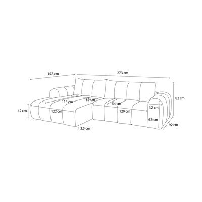 Ľavý roh/s leňoškou, svetlosivá, trojmiestna, šírka 272 cm, hĺbka 153 cm, hĺbka sedadla 54 cm, …