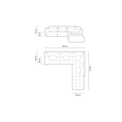 Pravý roh/do L, sivá, viacmiestna, šírka 316 cm