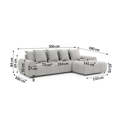 Pravý roh/s leňoškouSvetlosiváVodoodolná/odolná proti škvrnámŠtvormiestnaŠírka 306 cm
