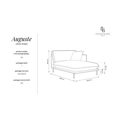 Vytvorte si doma miesto na relax a začítajte sa do svojej obľúbenej knihy. Leňoška Auguste od značky Interieurs 86 zaujme elegantným vzhľadom doplneným o kovové podnožie. Dohromady utvára moderný dizajn, ktorý ľahko zladíte s vaším interiérom. Je príjemná na dotyk a zároveň aj dostatočne odolná. Matný zamatový povrch dopĺňa aj hydrofóbna vrstva, vďaka ktorej sa nechtiac rozliaty nápoj nevsiakne dovnútra. Súčasťou balenia je dekoratívny vankúšik s rozmerom 47 x 47 cm.