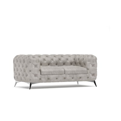 Zamatová, chesterfield, svetlosivá, dvojmiestna, šírka 185 cm