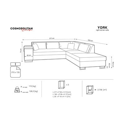 Spoznajte pohodlie s Cosmopolitan Design. S pohovkou York urobíte z obývacej izby miesto na prespanie pre hostí. Je priestranná aj v zloženom stave a má jednoduchý dizajn, ktorý ľahko zladíte so zvyškom domácnosti.