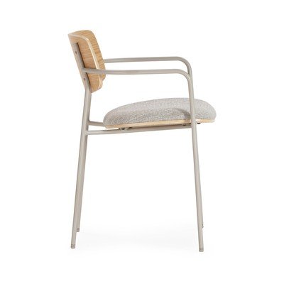 Sada jedálenských kresiel Nour od MOME s podrúčkami. Pohodlné sedenie zaisťuje čalúnený sedák a praktické podrúčky.