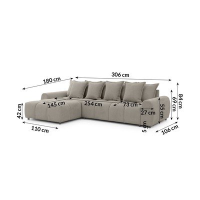 Ľavý roh/s leňoškouTaupeVodoodolná/odolná proti škvrnámŠtvormiestnaŠírka 306 cm