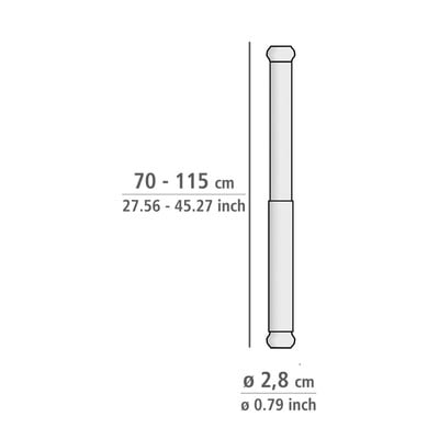 Tyč má nastaviteľnú šírku od 70 do 115 cm a možno ju upnúť medzi dve steny pomocou plastových nástenných adaptérov, ktoré sú súčasťou balenia.