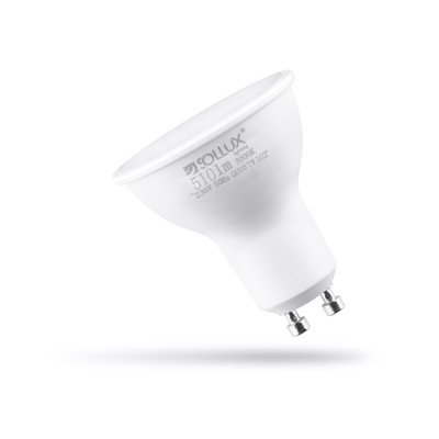 Teplá biela LED žiarovka GU10, 7 W od značky Sollux. Vďaka technológii LED zaručuje dlhú životnosť a úsporu energie.