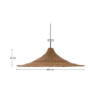 Je vyrobené z ratanu a jeho unikátny tvar, pripomínajúci široký klobúk, je výsledkom starostlivého ručného tkania.