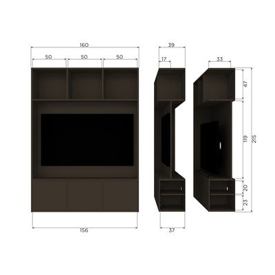 TV zostava Meggy od značky WOOOD. Poskytuje integrované riešenie pre umiestnenie televízora a zároveň ponúka rozsiahly úložný priestor s otvorenými policami a uzavretými skrinkami.