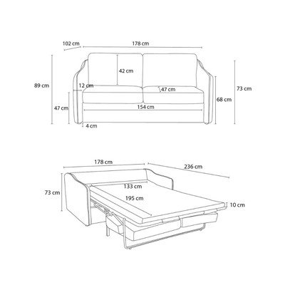 Na každodenné spanie/rozkladacia, tmavomodrá, dvojmiestna, šírka 178 cm, hĺbka 102 cm, hĺbka sedadla 52 cm, …