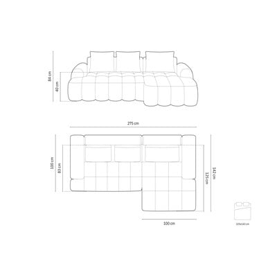 Rozkladacia/s úložným priestorom, pravý roh/s leňoškou, tmavomodrá, štvormiestna, šírka 275 cm