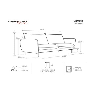 Svetlomodrá zamatová pohovka 200 cm Vienna – Cosmopolitan Design