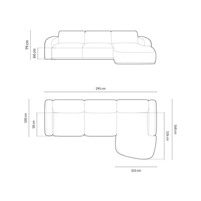 ZamatováPravý roh/s leňoškouTmavomodráTrojmiestnaŠírka 295 cm