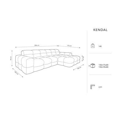 Užite si moderný dizajn pohovky Kendal. Povrch je jemný a príjemný na dotyk vďaka zamatovému úpletu. Úplet je tiež veľmi odolný. Pohovka je teda skvelou voľbou pre majiteľov domácich maznáčikov.