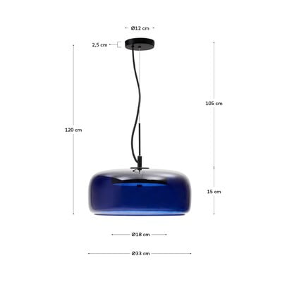 Tmavomodré závesné svietidlo Reig so skleneným tienidlom s priemerom 38 cm od značky Kave Home je vybavené integrovaným LED svetlom s výkonom 10 W. Môžete ho kombinovať s ďalšími produktmi z rovnakej kolekcie.