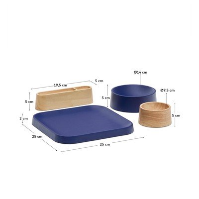 Súprava tmavomodrých/v prírodnej farbe drevených servírovacích misiek Bletz od značky Kave Home je ideálna na každú príležitosť. Táto súprava sa skladá zo štyroch kusov, ktoré kombinujú prírodný vzhľad akáciového dreva s hladkým povrchom.