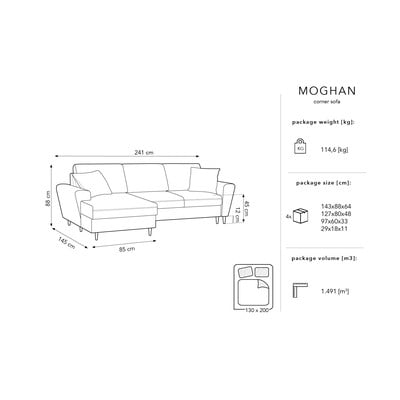 S pohovkou Moghan vám doma nebude chýbať pohodlie ani štýl. Vďaka značke Micadoni Home v nej nájdete aj charakteristické prvky škandinávskeho štýlu. Povrch pozostáva z matnej textúry s úzkymi 3 mm pruhmi a je vysoko odolný proti oderu. hydrofóbny poťah zabraňuje prenikaniu tekutín dovnútra pohovky. Okrem toho sa môže pochváliť certifikátom Oeko-Tex, ktorý zaručuje zdravotnú nezávadnosť bez škodlivých chemikálií a minimalizuje vplyv výrobného procesu na životné prostredie.