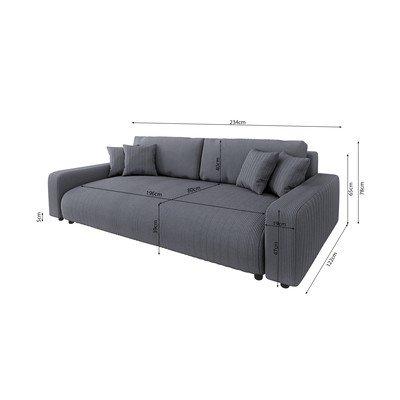 Menčestrová, rozkladacia/s úložným priestorom, tmavosivá, trojmiestna, šírka 234 cm