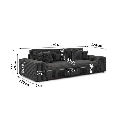 Menčestrová, rozkladacia/s úložným priestorom, tmavosivá, vodoodolná/odolná proti škvrnám, trojmiestna, šírka 260 cm