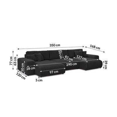 MenčestrováRozkladacia/s úložným priestoromDo tvaru "U"TmavosiváVodoodolná/odolná proti škvrnámViacmiestnaŠírka 350 cm