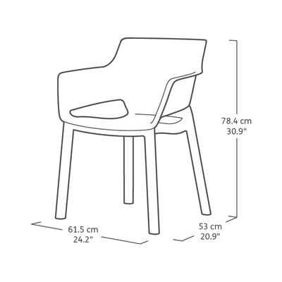 Kvalitná a pohodlná plastová stolička. Esteticky dva oštepy nad tými, ktoré sa dajú kúpiť o niečo lacnejšie v obchodných centrách.