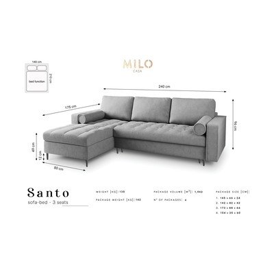 Priestranná pohovka, na ktorej sa môžete všetci spoločne uvelebiť, je základom rodinnej obývačky. Značka Milo Casa z Talianska to dobre vie a je symbolom rafinovanej kvality a pôsobivého, elegantného dizajnu. Rozkladacia pohovka Santo poskytuje skvelý priestor na relaxáciu pre celú rodinu a dodáva interiéru nádych luxusu. Tkaniny používané touto značkou prechádzajú prísnym testovaním, aby sa zaručila najvyššia odolnosť, pohodlie a atraktívny štýl.