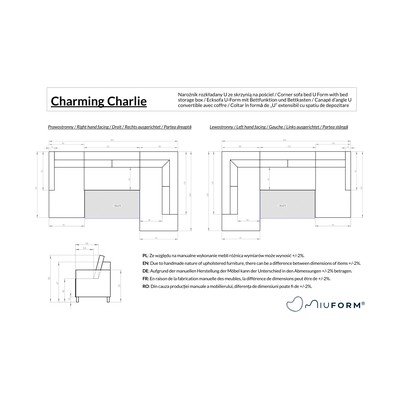 Sivá rozkladacia rohová pohovka (pravý roh/do tvaru "U") Charming Charlie – Miuform
